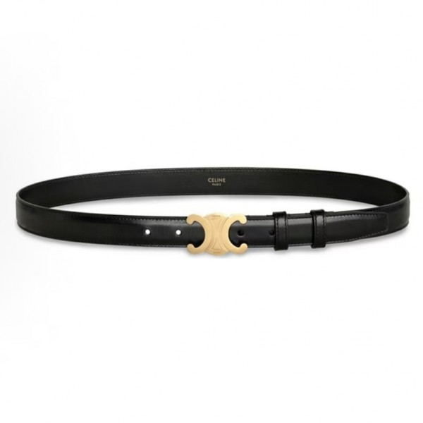 프랑스 파리의 럭셔리 패션 하우스 **셀린느**의 아이코닉한 제품인 트리옴프 블랙 레더 벨트는 세련된 감각과 실용성을 동시에 갖춘 여성용 명품 액세서리입니다.