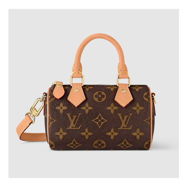 루이비통 나노 스피디는 가벼운 무게와 손에 들거나 크로스백으로 착용할 수 있는 스트랩이 특징이며,