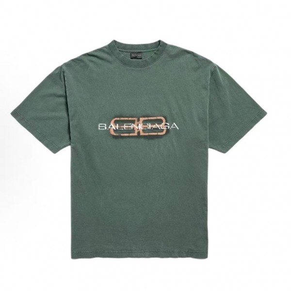 • 뒤로 발렌시아가 25FW BB 시리즈 빈티지 워시드 티셔츠 그린 > 남성의류