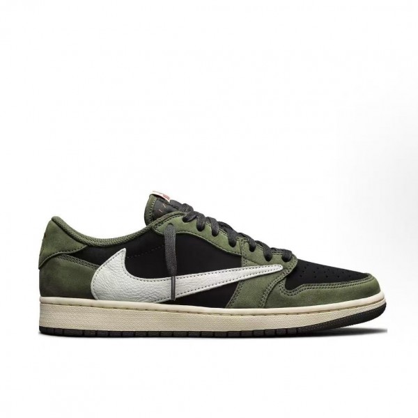 트래비스 스캇 × 나이키 에어 조던 1 로우 OG 그린 블랙 화이트 (DM7866-002)는 트래비스 스캇과 조던 브랜드의 협업 라인 중 최신 컬러웨이로,