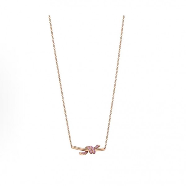 티파니의 아이코닉한 감성을 담아낸 Knot 시리즈 18K 로즈골드 로고 목걸이는 우아함과 세련미가 조화된 여성 주얼리로,