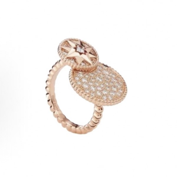 • 디올 로즈 데 방스 컴퍼스 로즈 10주년 기념 다이아몬드 반지 남녀공용 골드