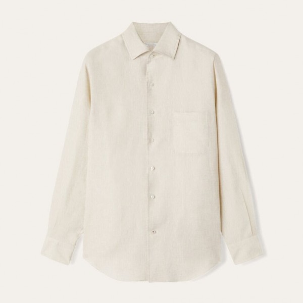 로로피아나 솔리드 칼라 싱글 버튼 긴팔 셔츠 남성용 아이보리 (B+공장)