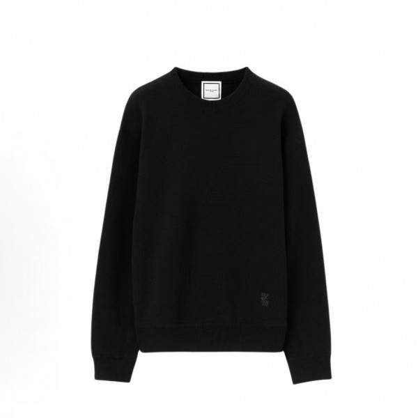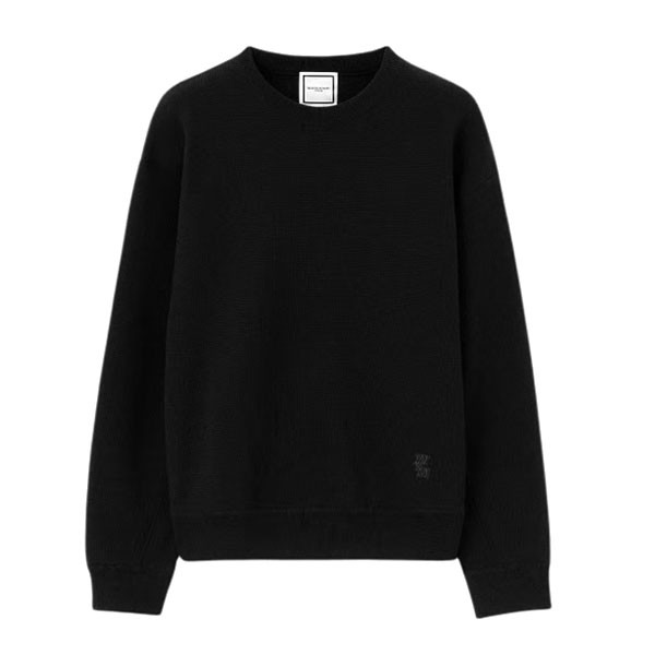 • 뒤로 우영미 FW25 라운드 넥 심플 풀오버 니트 스웨터 남성용 블랙 > 남성의류