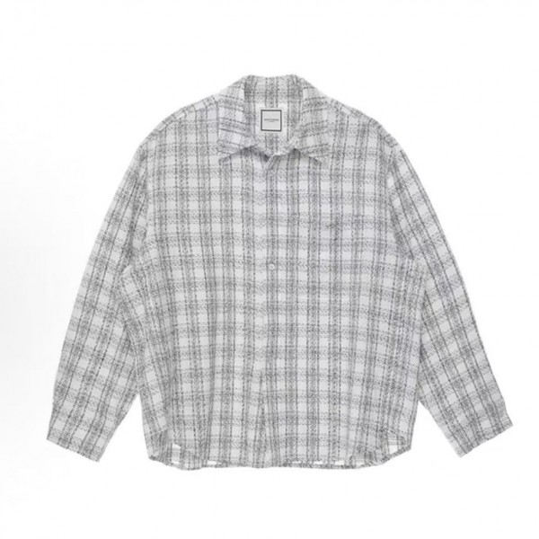 • 뒤로 우영미 SS25 체크 컴포트 카라 긴팔 셔츠 남성 화이트 > 남성의류