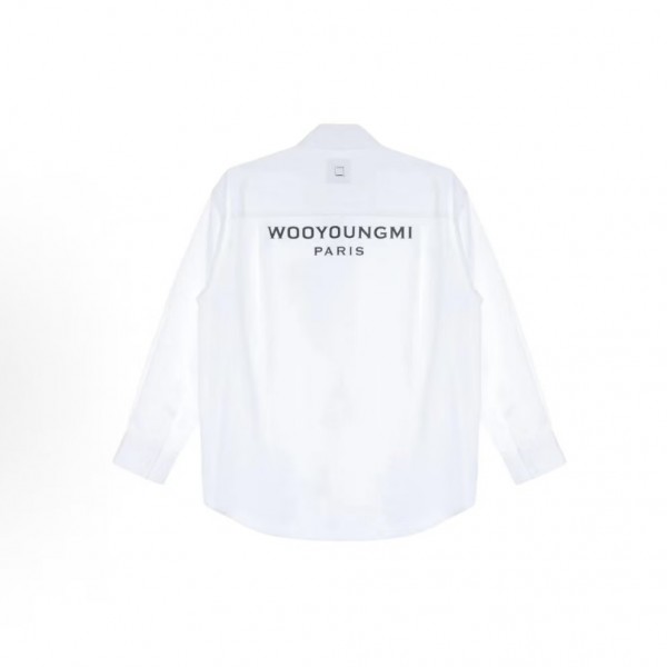 우영미 백 로고 포인트 스프레드 칼라 버튼업 긴팔 셔츠 남성 화이트