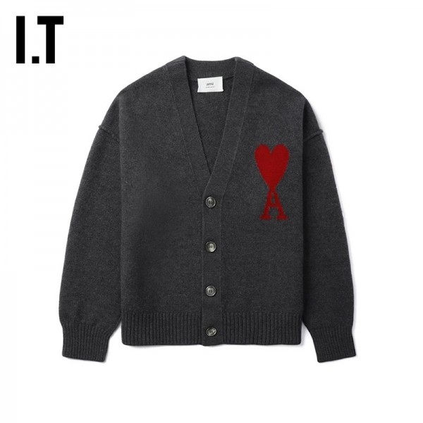 • 뒤로 아미파리 클래식 하트 로고 V넥 니트 스웨터 긴팔 루즈핏 그레이 (탑아미공장) > 남성의류