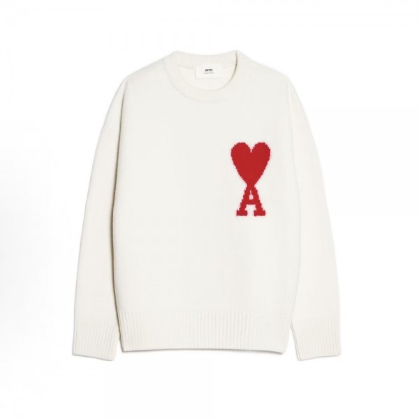 아미파리스 빅 하트 레드 로고 울 라운드 니트 아이보리 (탑아미공장)
