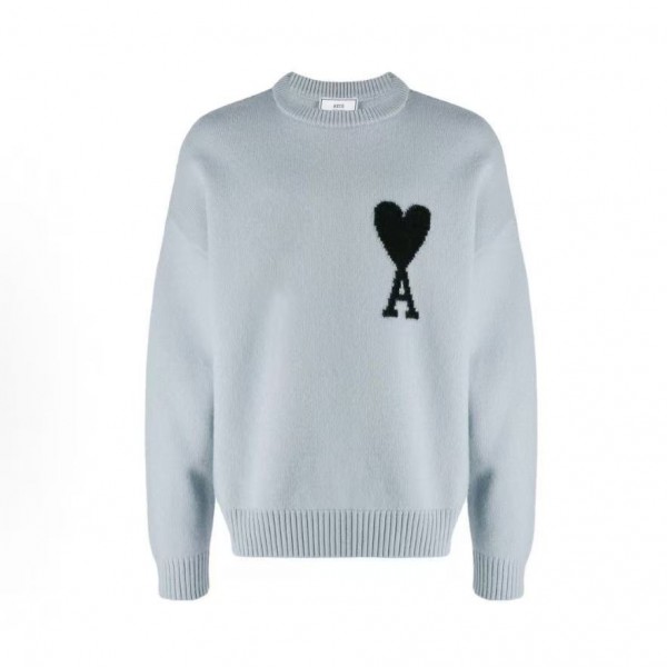 아미파리스 하트 레터링 자카드 라운드넥 루즈핏 니트 (탑아미공장)