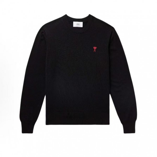 아미파리 하트 로고 미니 자수 크루넥 울 니트 남성 블랙 (탑아미공장)