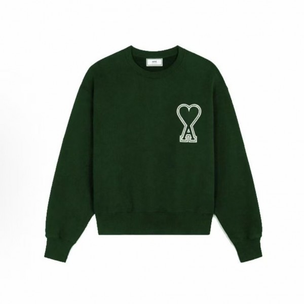 • 뒤로 아미파리 퓨어 컬러 하트 로고 클래식 라운드넥 맨투맨 그린 (탑아미공장) > 남성의류