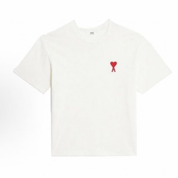 아미파리 SS23 레드 하트 자수 반팔 티셔츠 화이트 (탑아미공장)
