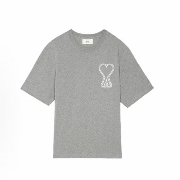 • 뒤로 아미파리 SS21 하트 로고 자수 라운드넥 반소매 티셔츠 그레이 (탑아미공장) > 남성의류