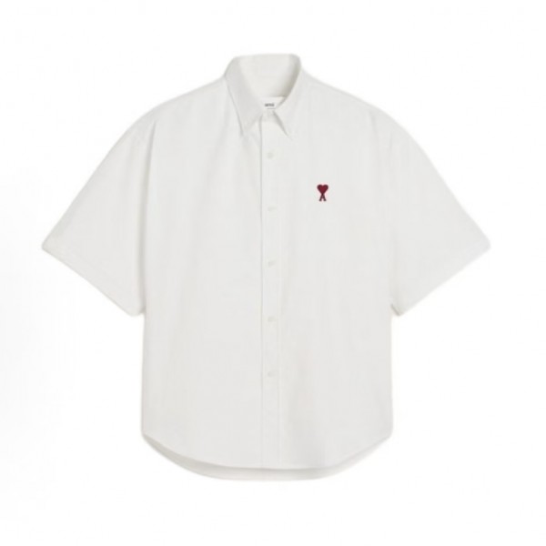 아미파리 단색 카라 버튼 로고 자수 하트 루즈핏 반소매 셔츠 화이트 (탑아미공장)