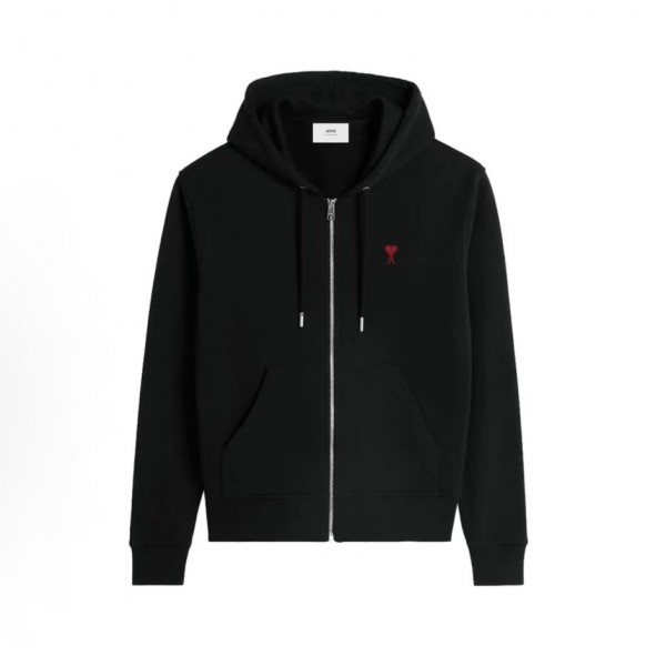 아미파리 FW24 레드 하트 코튼 집업 슬림핏 후드 스웨트 재킷 블랙 (탑아미공장)