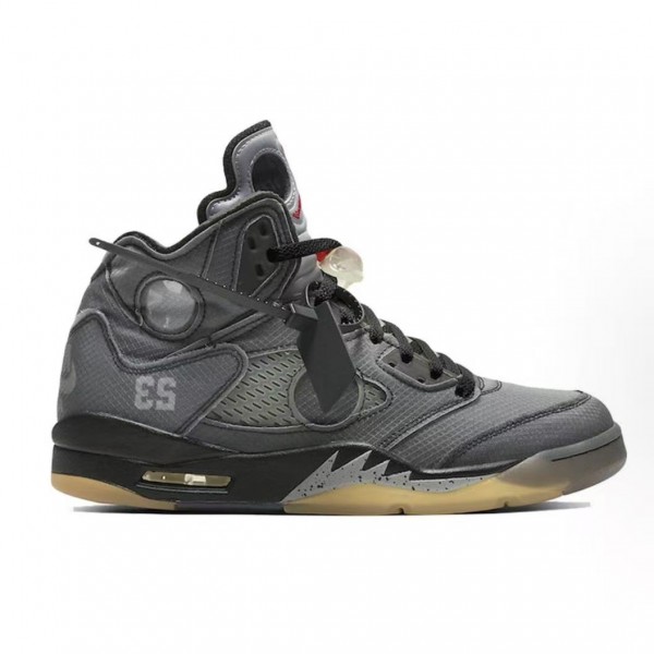 오프화이트 x 나이키 에어 조던 5 “Black” (CT8480-001)은 버질 아블로(Virgil Abloh)의 독창적인 해체주의 디자인 철학이 녹아든 협업 모델로, 2020년에 공개된 상징적인 스니커즈입니다.