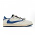 화이트 가죽 어퍼와 블루 포인트가 조화를 이루며, 독창적인 라이트닝 그래픽과 Travis Scott 특유의 리버스 스우시 디테일이 적용되어 유니크한 디자인을 완성했습니다.
