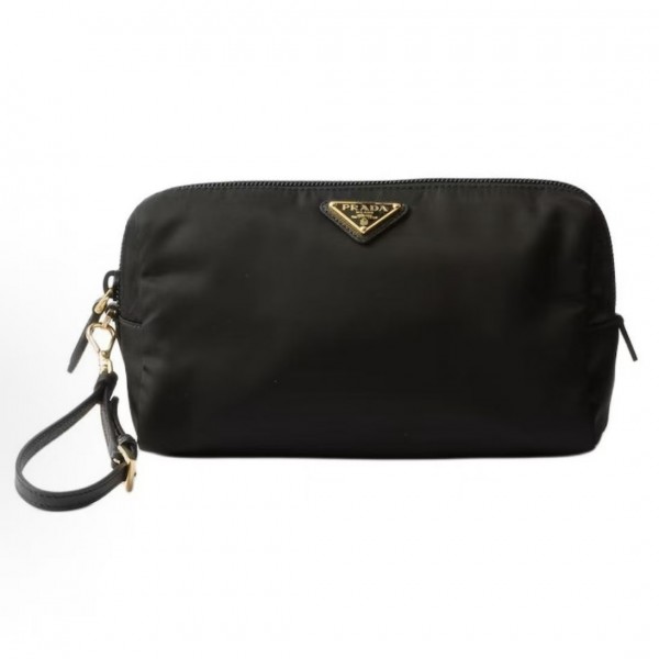 프라다 리나일론 에나멜 삼각 로고 클러치는 브랜드의 아이코닉한 삼각형 에나멜 메탈 로고와 친환경 재생 나일론 소재가 조화를 이루는 세련된 핸드 클러치입니다.