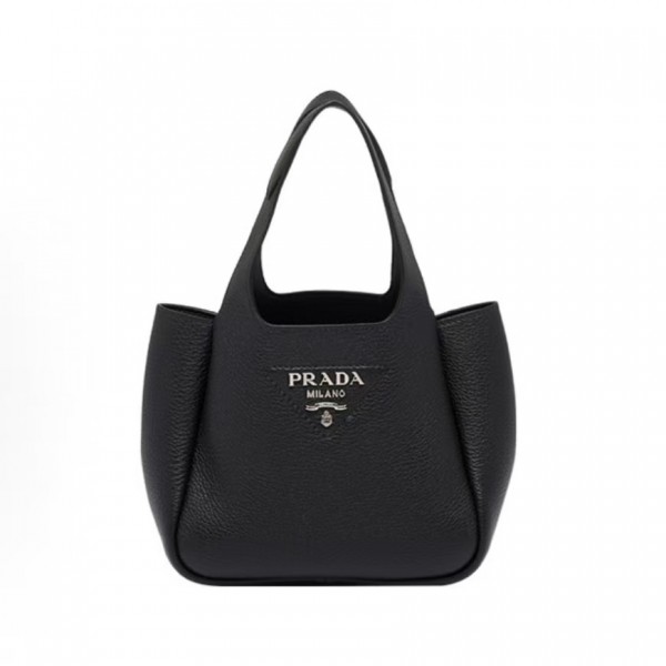 프라다 메탈 각인 로고 버킷 토트백 1BA349는 간결한 버킷 실루엣과 고급 가죽 소재가 조화를 이루는 세련된 핸드백입니다.