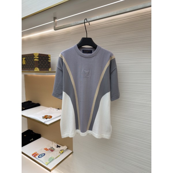 • 뒤로 루이비통 레터 로고 엠보싱 배색 니트 반팔 티셔츠 (X공장) > 남성의류