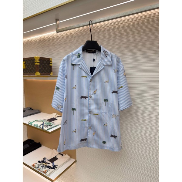 루이비통 동식물 레트로 패턴 스트라이프 반팔 셔츠 (X공장)