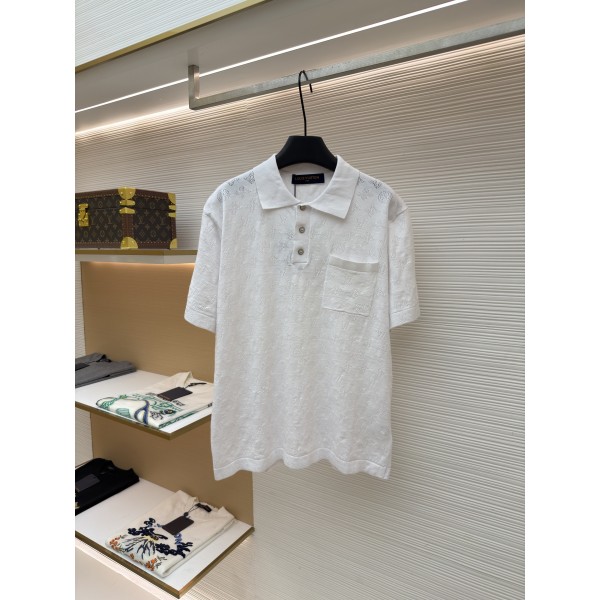 루이비통 레터 퍼포레이티드 펀칭 자카드 니트 반팔 폴로 셔츠 (X공장)