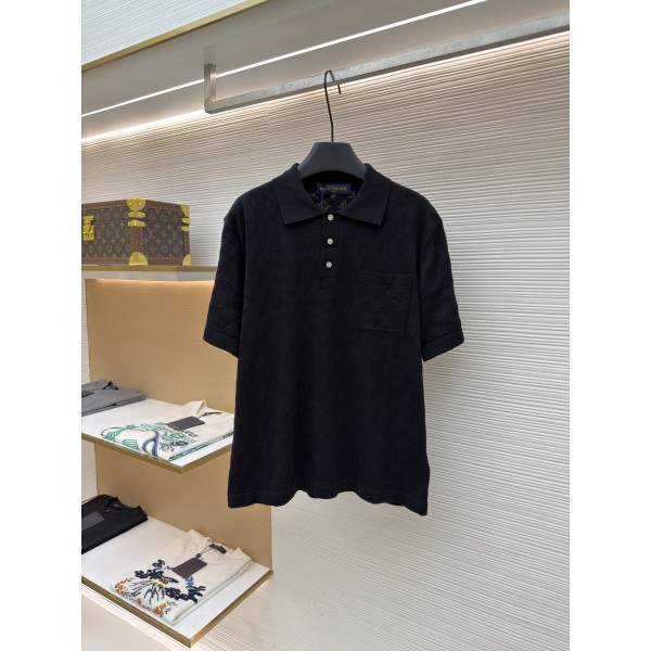 • 뒤로 루이비통 레터 퍼포레이티드 펀칭 자카드 니트 반팔 폴로 셔츠 (X공장) > 남성의류