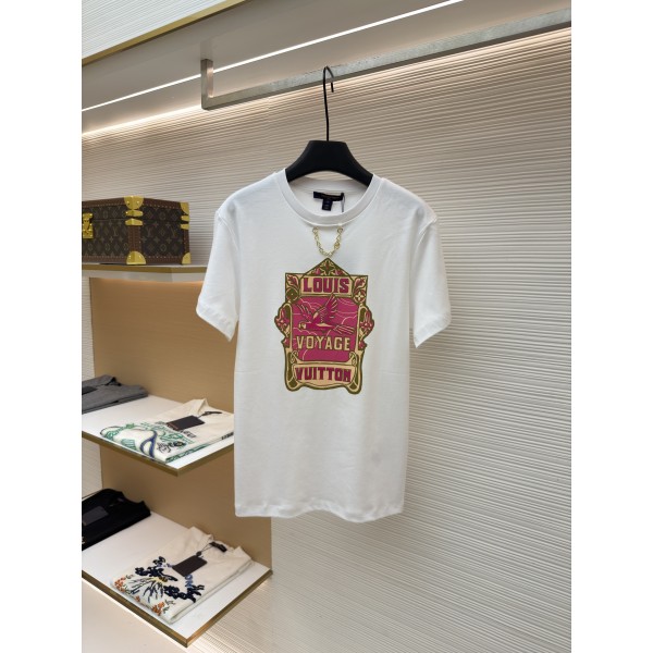 루이비통체인 장식 넥라인 컬러 프린트 반팔 티셔츠 (X공장)