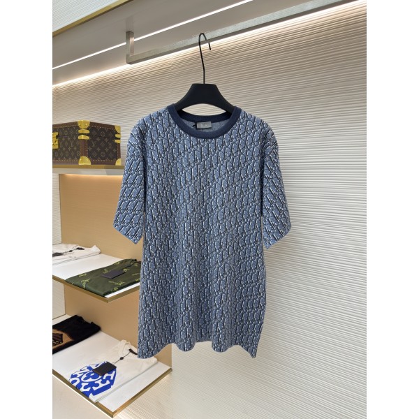 디올 블루 올오버 자카드 코튼 반팔 티셔츠 (X공장)