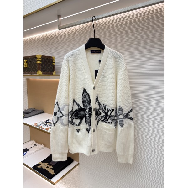 루이비통 패턴 싱글 버튼 가디건 V넥 니트