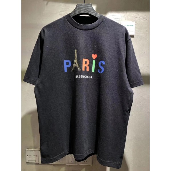 • 뒤로 발렌시아가 파리 로고 반팔 티셔츠 > 의류